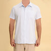 Na parte de trás, a camisa apresenta pregas na pala, adicionando um detalhe elegante.