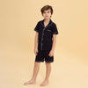 Descubra a sofisticação e o conforto incomparável do novo conjunto clássico de pijama infantil para meninos da Sweetie. Este conjunto icônico ganha uma versão ainda mais elegante em um deslumbrante tom de azul marinho, confeccionado no mais suave e refinado algodão pima peruano, disponível exclusivamente em nossa coleção.