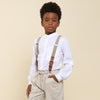 Adicione um toque de estilo e elegância ao visual do seu pequeno com nosso suspensório de couro marrom com regulagem de tamanho. Este acessório é ideal para momentos especiais como casamentos, batizados e outras ocasiões especiais. Feito com materiais de alta qualidade, este suspensório não só é funcional, mas também acrescenta sofisticação ao traje dos meninos. Acessórios especial da coleção Sweetie celebrações para meninos.