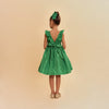 Lindo decote em V nas costas, proporciona uma aparência elegante e sofisticada, realçando a beleza natural da criança.