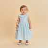 A gola com babados adiciona um toque de delicadeza ao vestido, tornando-o ainda mais infantil ao mesmo tempo, clássico.