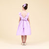 Lindo decote em V nas costas, proporciona uma aparência elegante e sofisticada, realçando a beleza natural da criança.