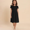 O Vestido Louise é confeccionado em tricoline preta, além de ser extremamente confortável, proporciona aconchego e bem-estar para que sua princesa possa brincar e aproveitar cada momento único da festa.