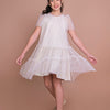 Ele é confeccionado em um delicado tule, com um drapeado no corpo que adiciona um toque de elegância ao vestido para as meninas.